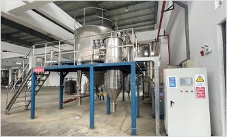 壓力噴霧干燥機干燥過程是物料由泵送至噴霧干燥機內,由霧化器將其分散為小霧滴;空氣經加熱后送入干燥室內與料霧混和、接觸;完成干燥過程后,干燥產品經分離后入庫貯藏或直接投入使用。 經壓力噴霧干燥機噴霧…